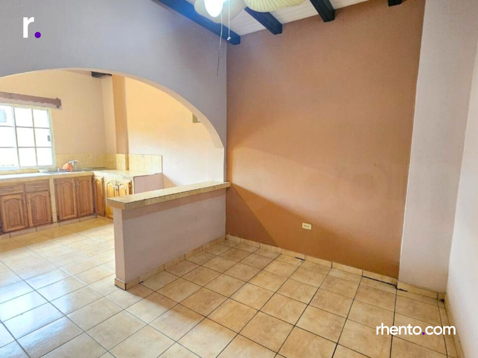 Una sala, cocina, comedor